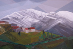 2011het voorjaar komt in Asturias, Spanje. Op de Picos de Europa ligt nog sneeuw